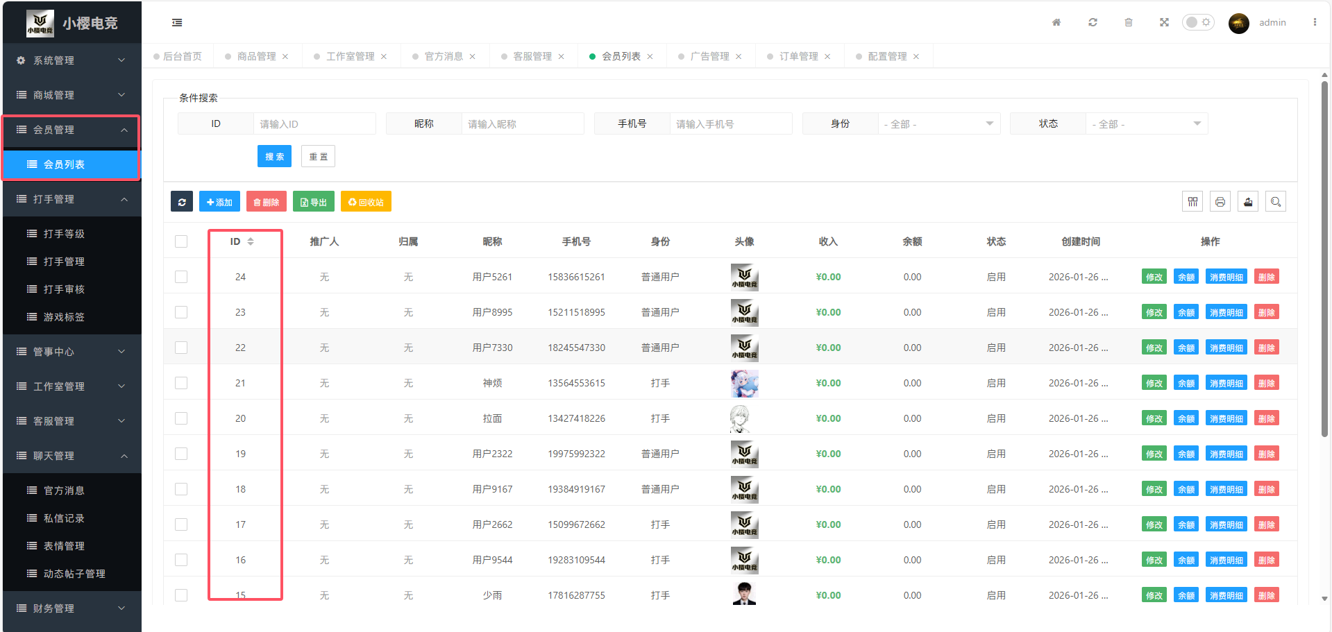 接收人ID,在【会员管理-》会员列表】中获取